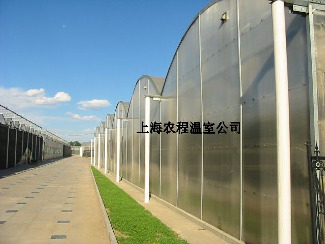 PC板温室外形有除文洛型和大屋脊型外,还有弧形屋面温室。